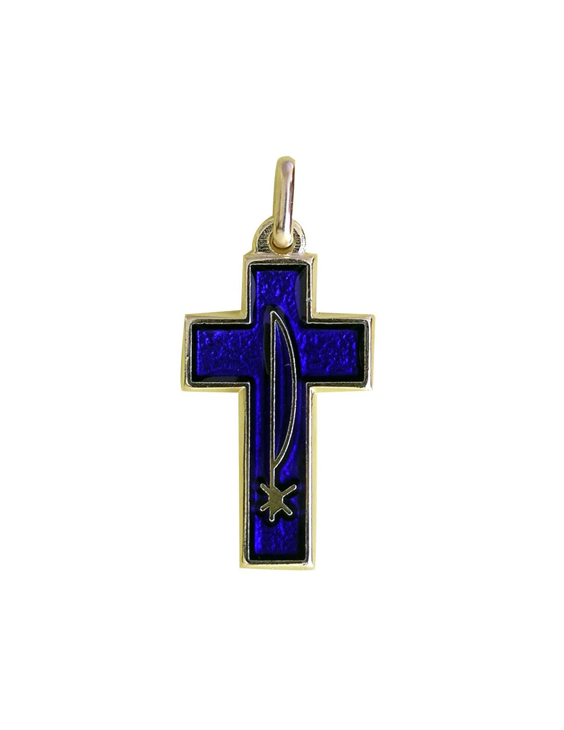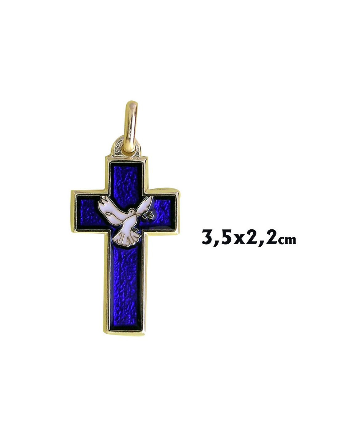 Cruz Esmalte Azul Paloma Y Pax Borde Dorado 4X2. 2Cm