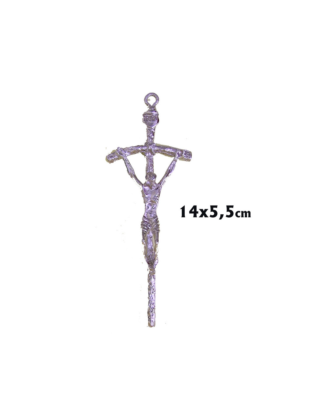 Cruz Metal Pastoral 14X5cm Colgar Plateada Cristo Al Aire