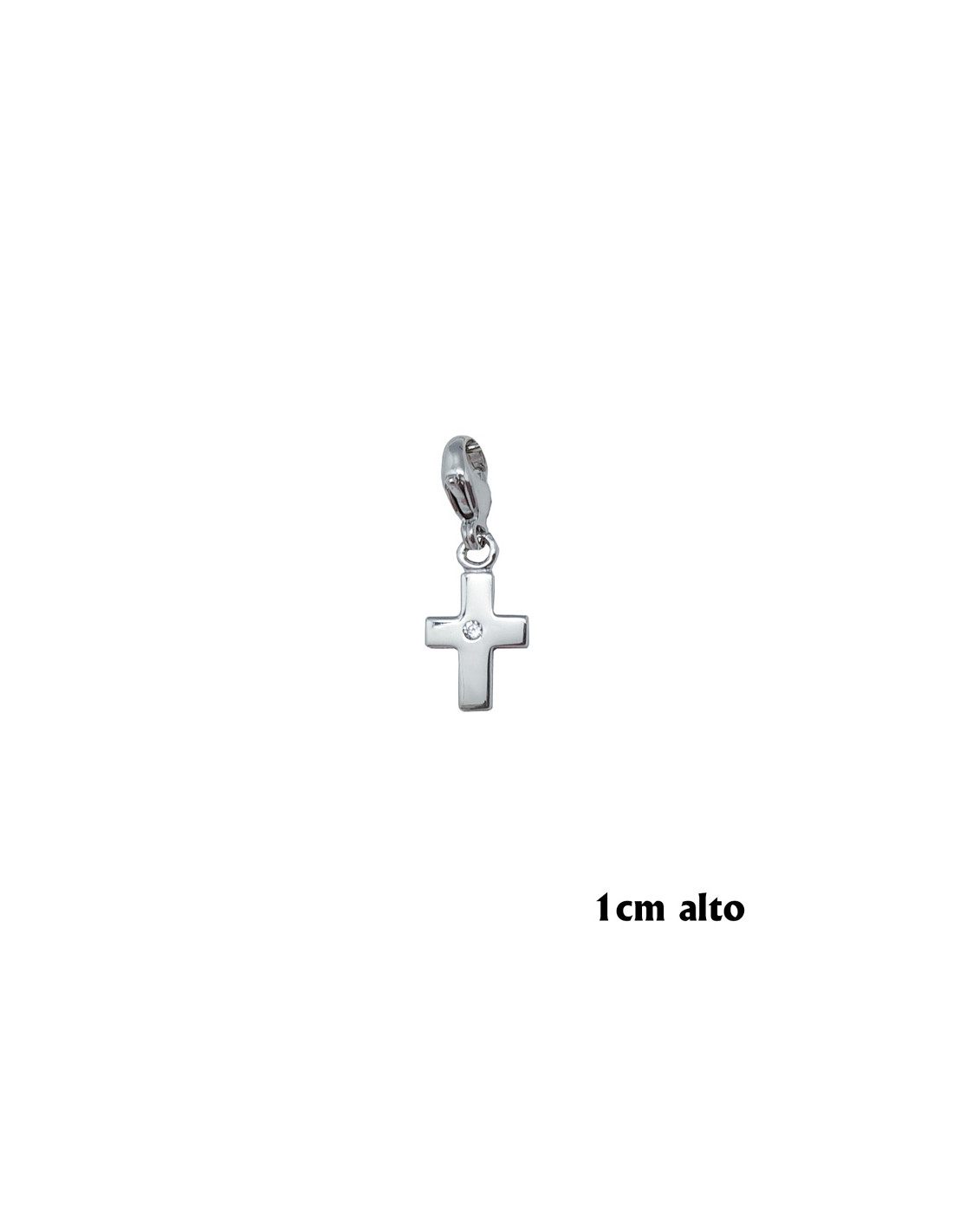 Cruz Plata Rodiada Lisa 10mm Con Mosqueton Para Colgar