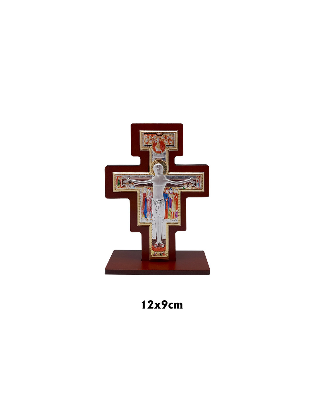 Crucifijo Cristo Plata Bilaminada 12 X 9Cm Sobre Cruz Pintada Para Colgar