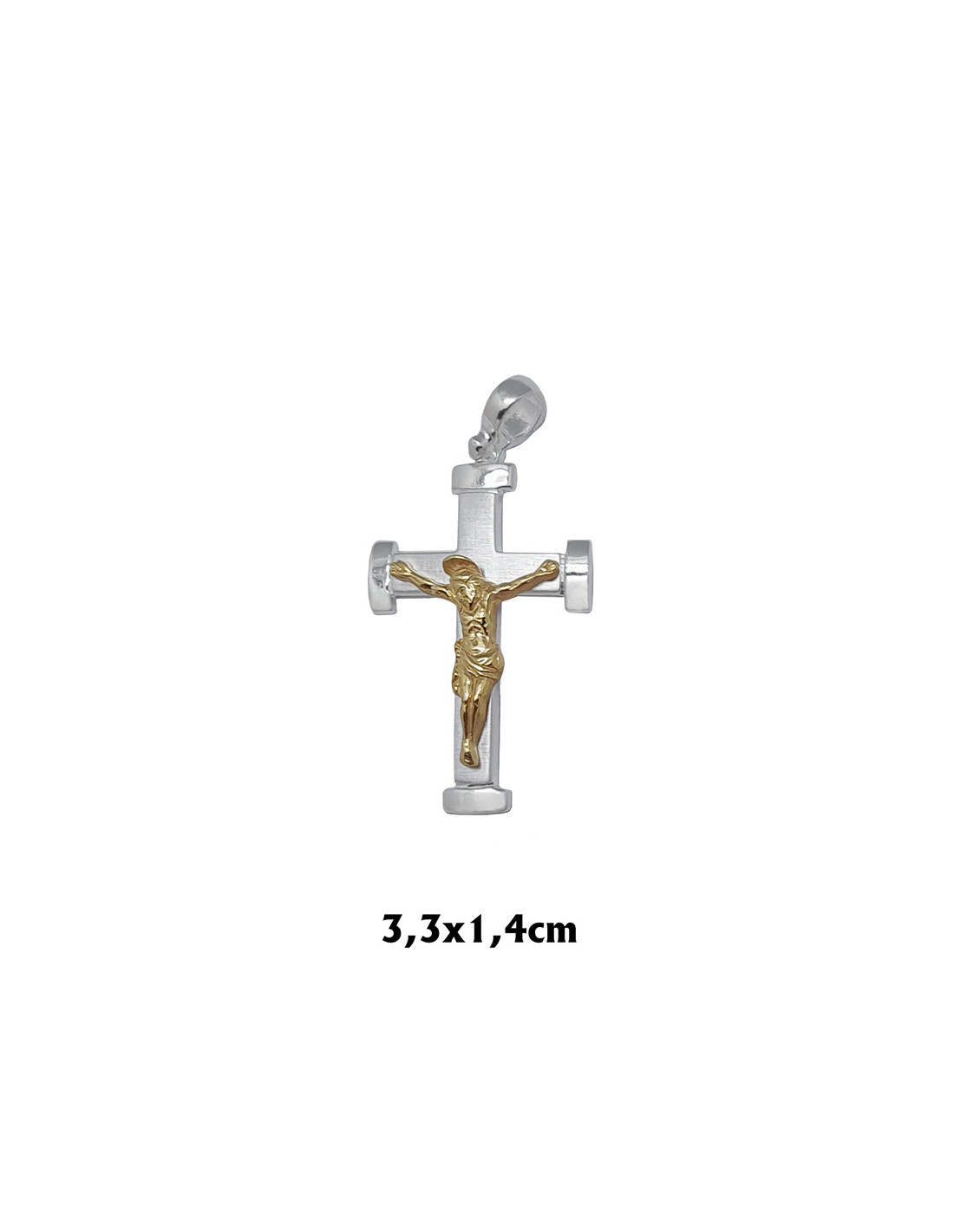Cruz Plata 33X14mm Con Cristo Dorado Argolla Gruesa