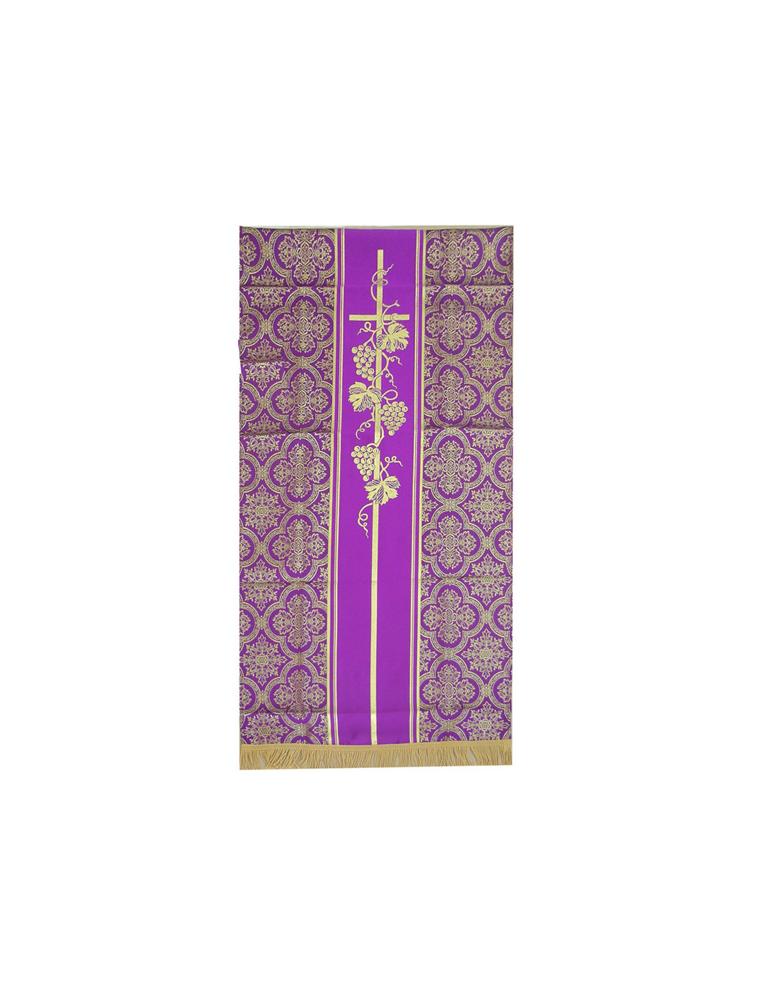 Cubre Ambon Estampado Cruz Largo Con Uvas Y Hojas De Parra Morado