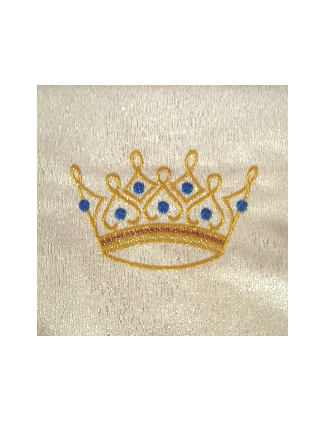 Cubre Ambon Bordado Mariano Tres Flores De Lis Y Corona Arriba Fondo Plateado