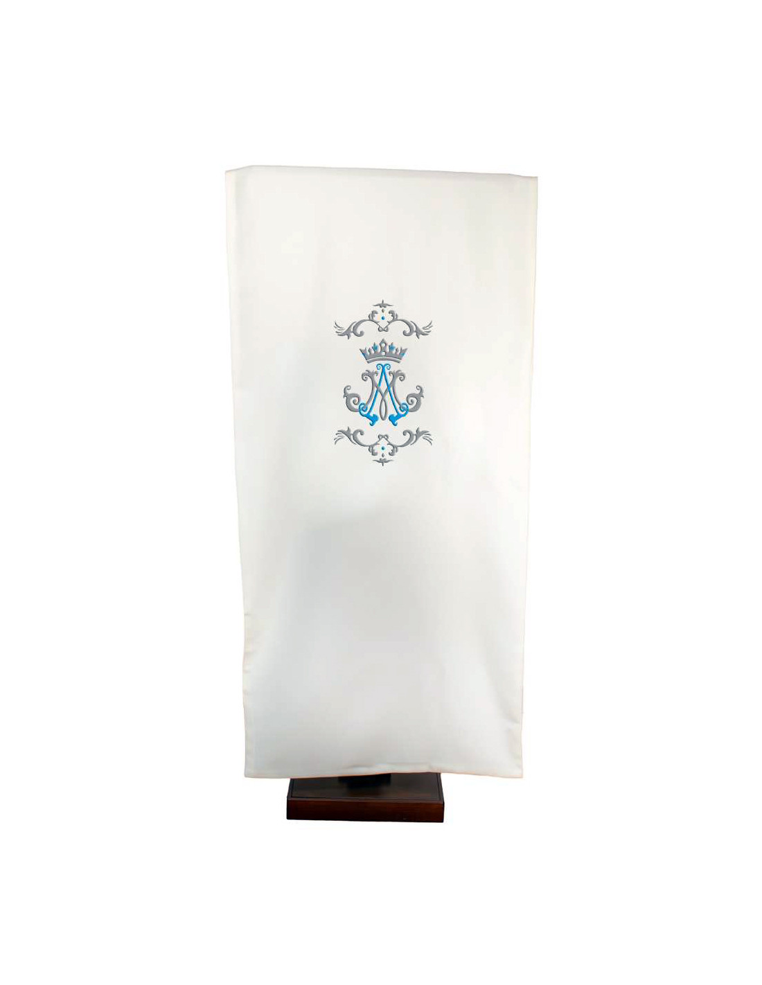 Cubre Ambon Bordado Mariano Azul Y Plata Con Corona Y Lineas Arriba Y Abajo