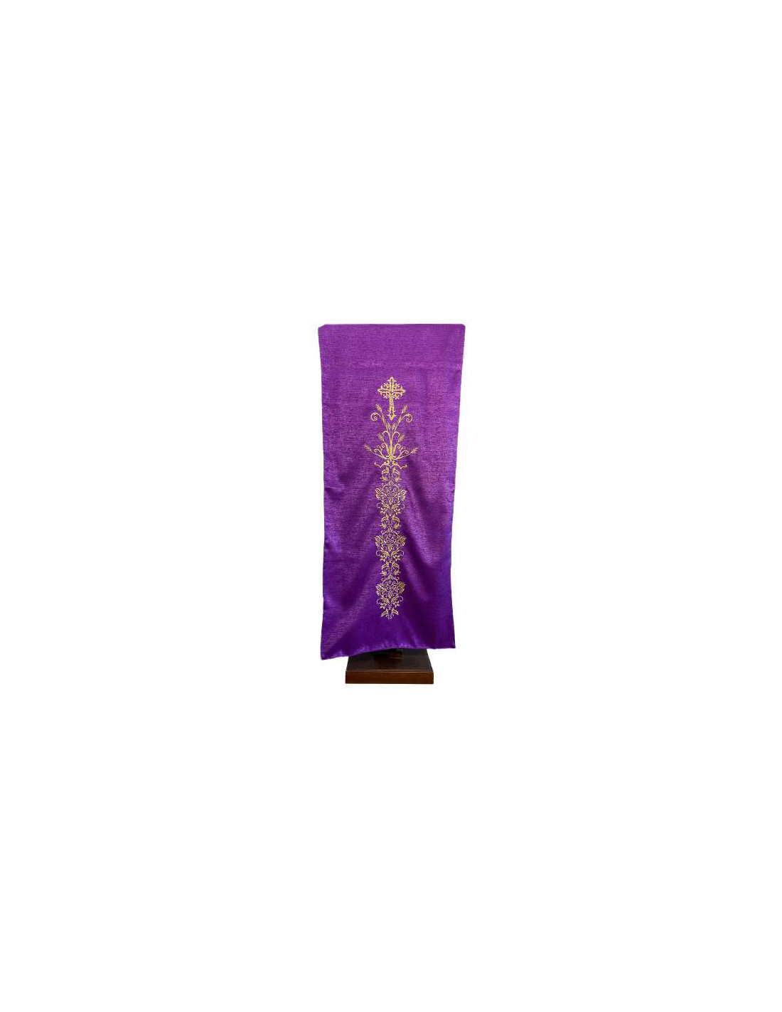 Cubre Ambon Bordado Cruz Con 2 Espigas Debajo Y Cenefa Floral Morado