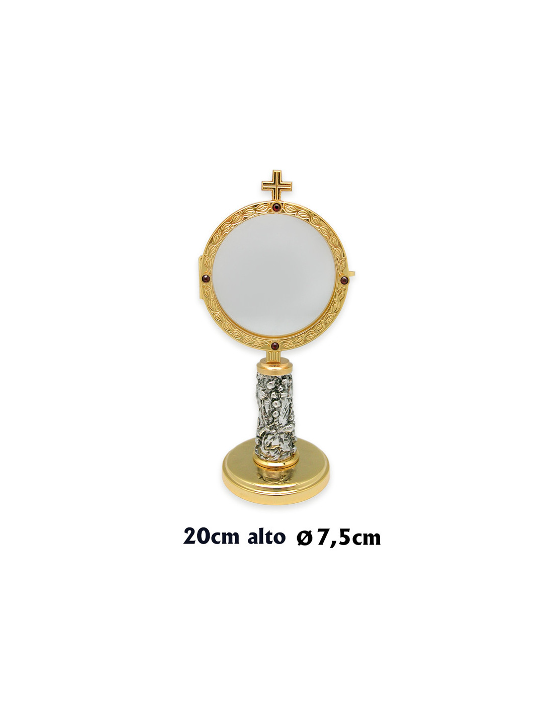 Custodia Dorada Redonda 20Cm Con Cruz Pie Plateado Uvas Y Piedras Rojas 480/A
