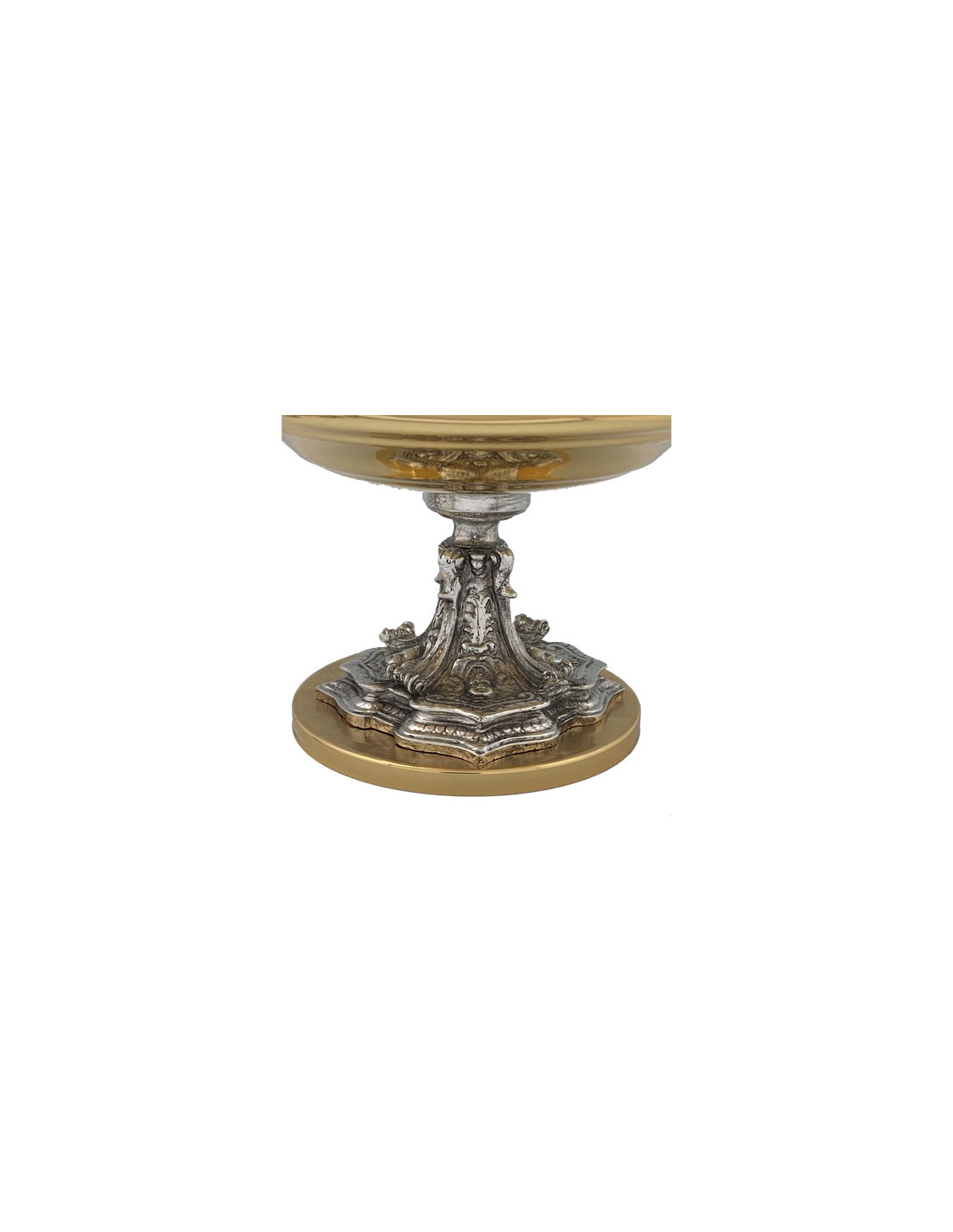 Tabor Dorado Con Nudo Plateado Adorno Floral Y Cara Angeles Base Redonda