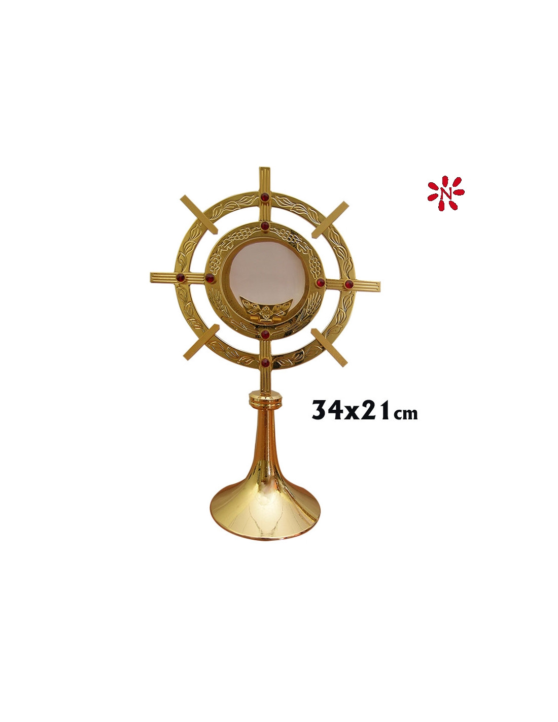 Custodia Dorada Circular 34X21cm Con Piedras Rojas Y Pie Liso Redondo N496