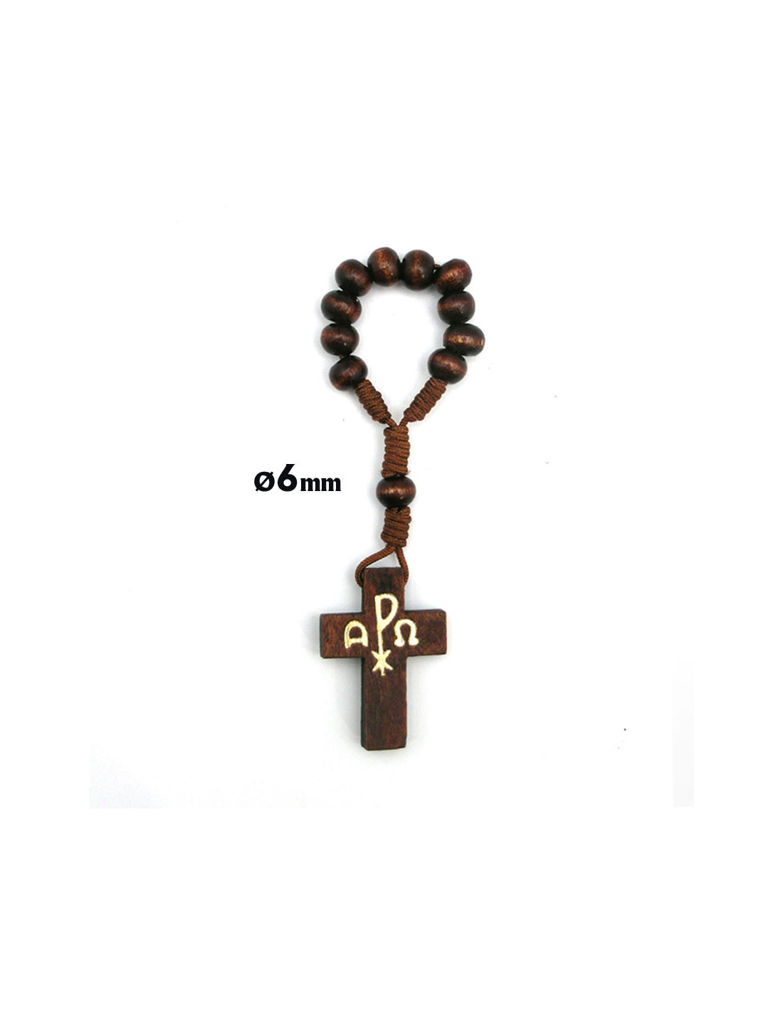 Decena Madera Y Cuerda Cruz Con Pax Marron