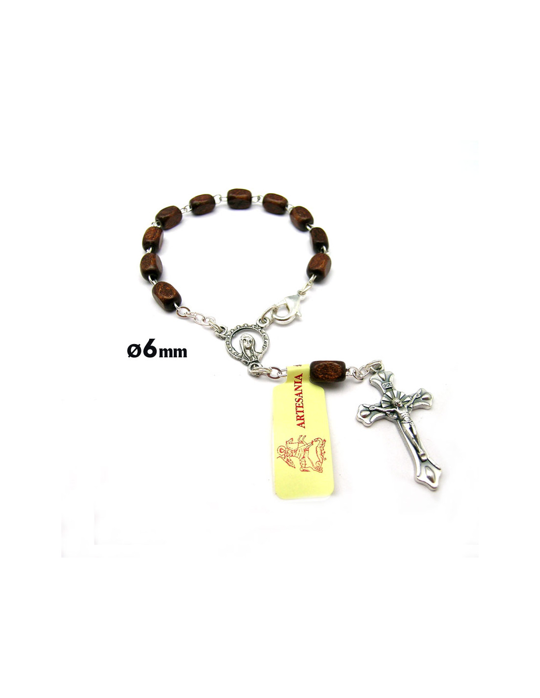 Decena Madera Rectangular Marron 6Mm Con Mosqueton