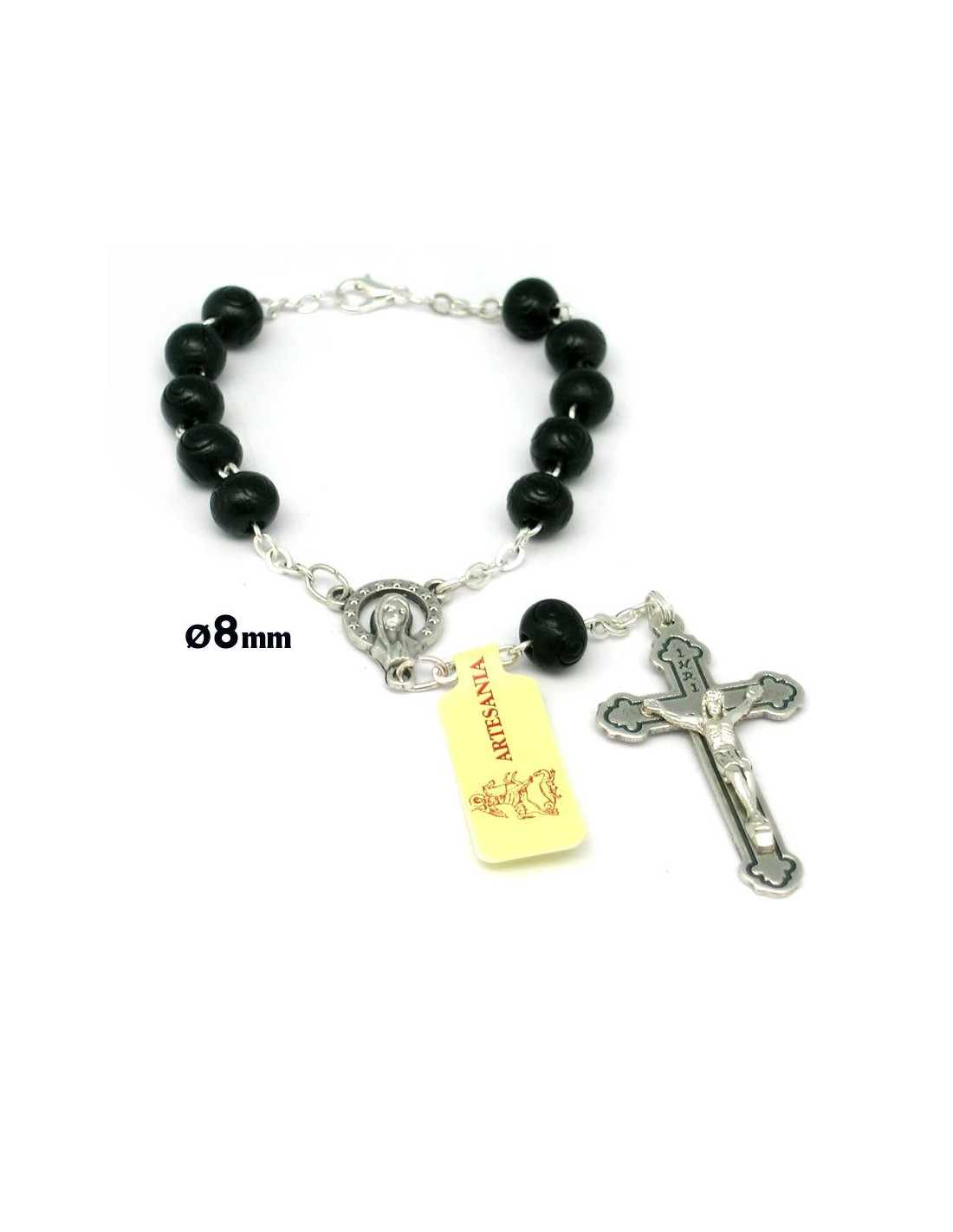 Decena Madera Redonda Trabajada 8Mm Negro Con Mosqueton