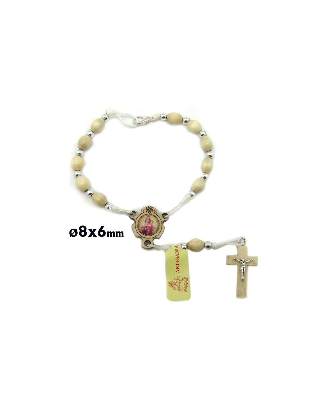 Decena Madera Oval Blanca 8X6mm Cuerda Bolitas Metal Cruz Cristo Mosqueton