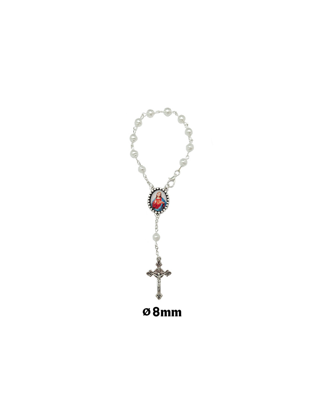 Decena Plastico Blanco Perla Rayada 6Mm
