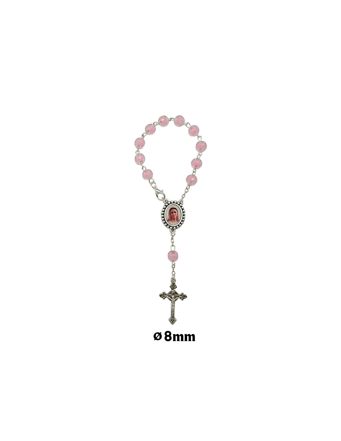 Decena Plastico Tallado Rosa 8Mm