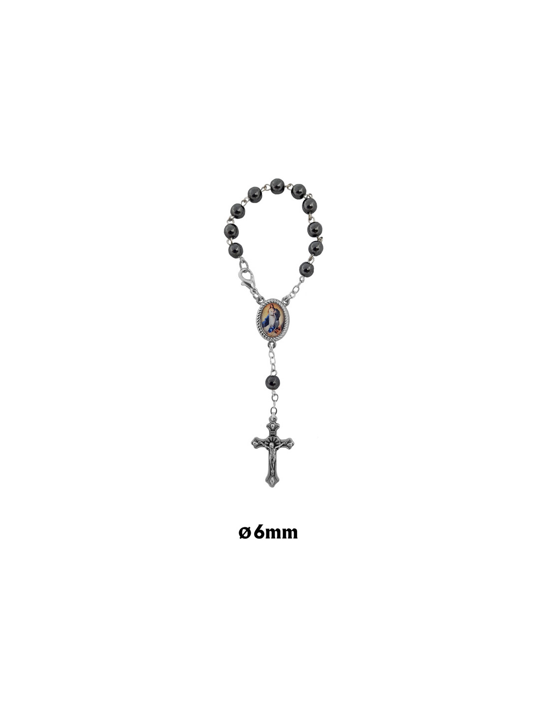 Decena Ematite 6Mm Con Cruz Y Mosqueton