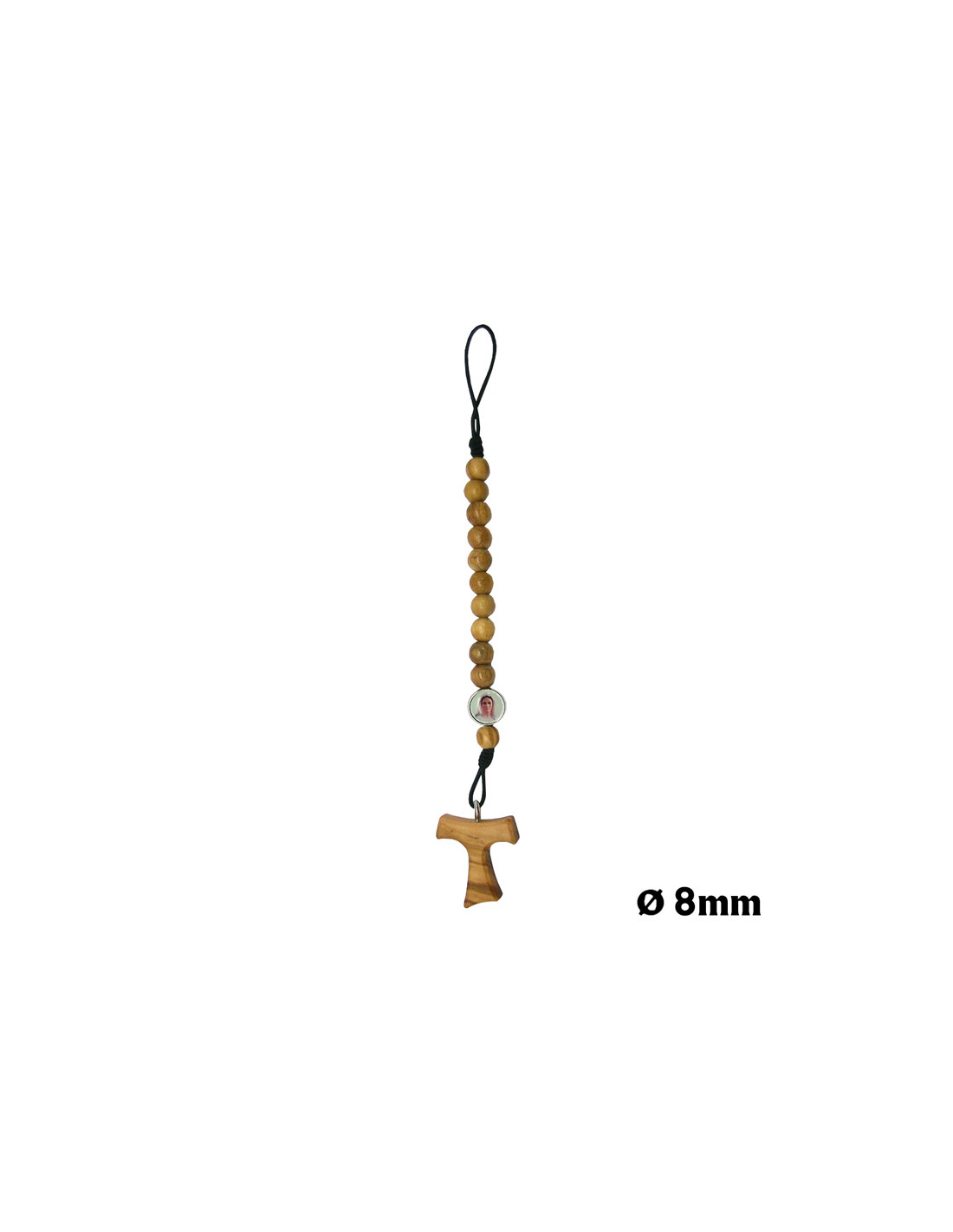 Decena Para Coche Madera Olivo Bola 8 Mm Con Cruz Tau