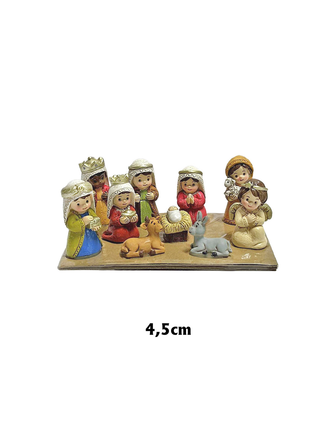 Nacimiento Res 8x6.5cm PCA 13 Sagrada Familia tonos suaves pesebre con estrella y vaca al pie