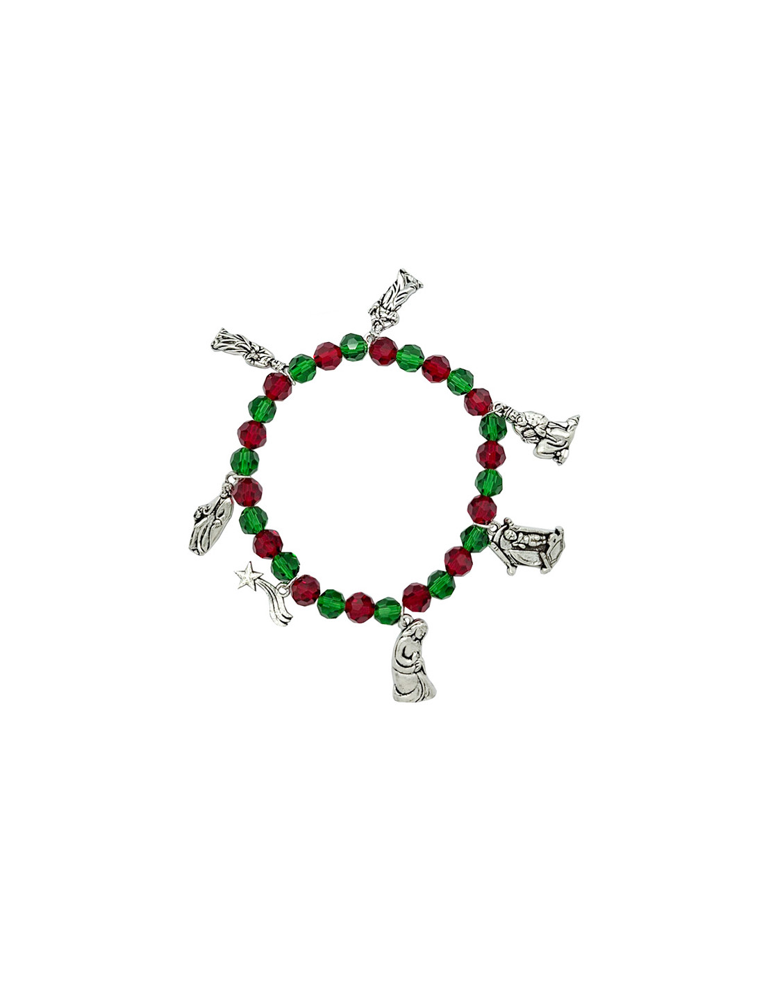 Pulsera Navidad Roja Y Verde Con 7 Figuras Metal