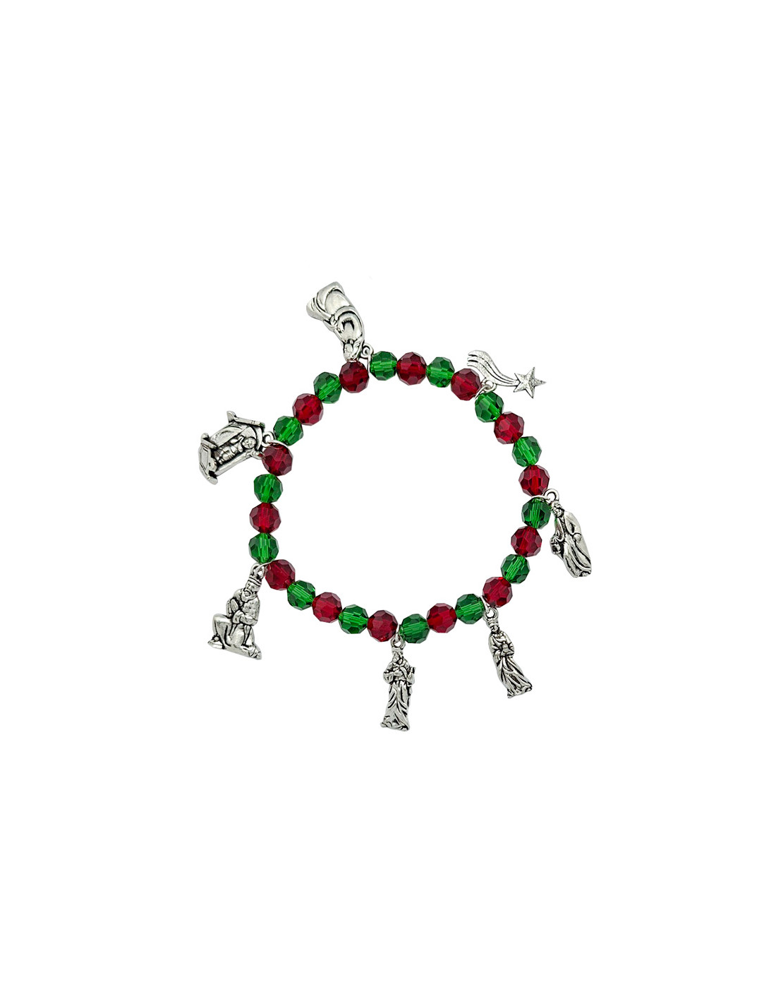 Pulsera Navidad Roja Y Verde Con 7 Figuras Metal
