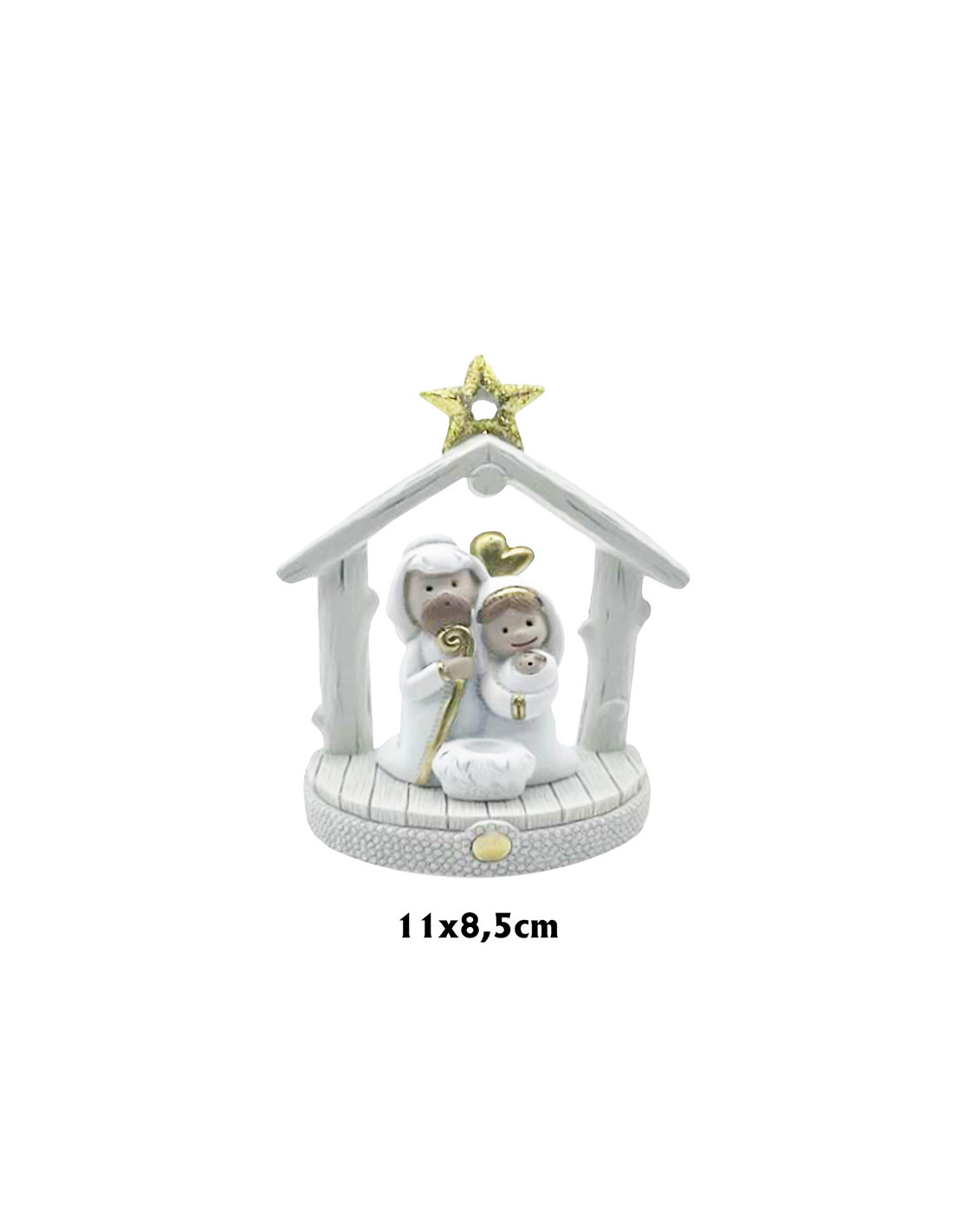 Nacimiento Res 11X8cm Pl01 Pesebre Familia Estilizada Niño En Brazos Estrella Y Adornos Dorados
