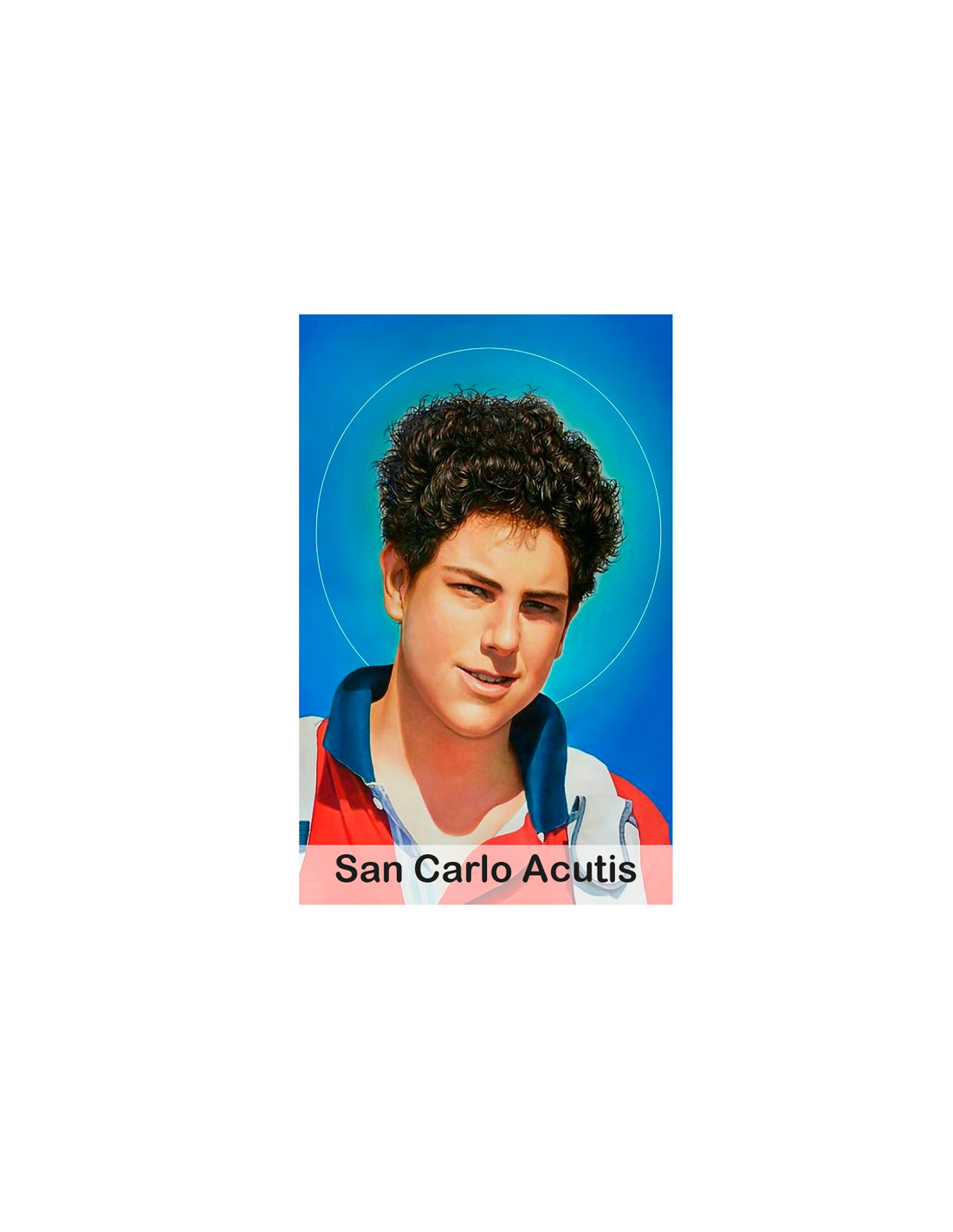 Estampa de 7x11 cm con la imagen de Carlo Acutis en el anverso y la oración del Santo de los jóvenes impresa en el reverso. El primer milagro que realizó Carlo Acutis fue con un niño brasileño de siete años que sufría un extraño trastorno pancreático que no tenía cura para los médicos. Se curó después de tener contacto con un trozo de camiseta que perteneció a Acutis, y fue aprobado por el Vaticano en 2020. El segundo milagro ocurrió con una mujer en julio de 2022. Peregrinó hasta la tumba de Carlo Acutis para pedirle por la curación de su hija, que había sufrido un grave trauma cerebral después de caerse de una bicicleta.