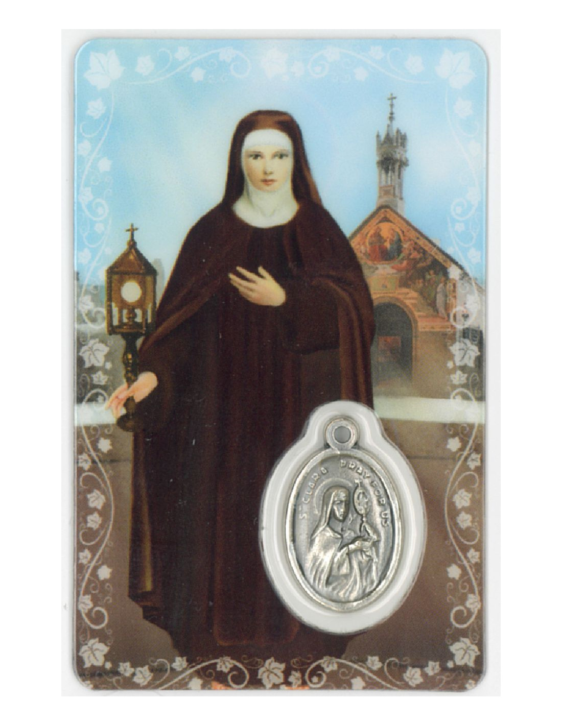 Estampa con Medalla de Santa Clara. La estampa mide 8x5cm y está realizada íntegramente en plástico en Canadá con un proceso optimizado de tecnología eficiente y sostenible.La medalla se encuentra integrada en la estampa. Ambas cosas le confieren una gran durabilidad, y que el color se mantenga en el tiempo.