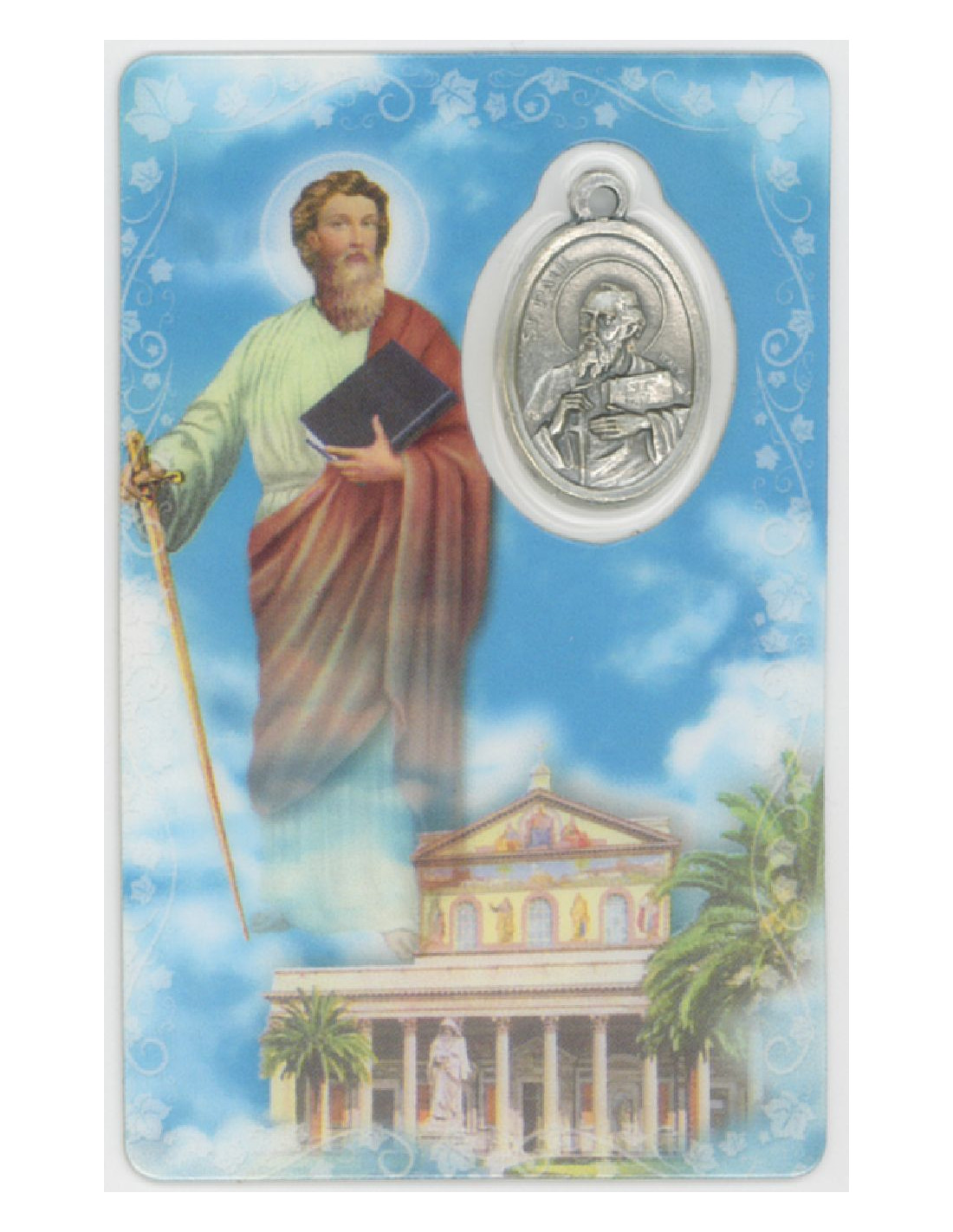 Estampa con Medalla de San Pablo. La estampa mide 8x5cm y está realizada íntegramente en plástico en Canadá con un proceso optimizado de tecnología eficiente y sostenible.La medalla se encuentra integrada en la estampa. Ambas cosas le confieren una gran durabilidad, y que el color se mantenga en el tiempo.