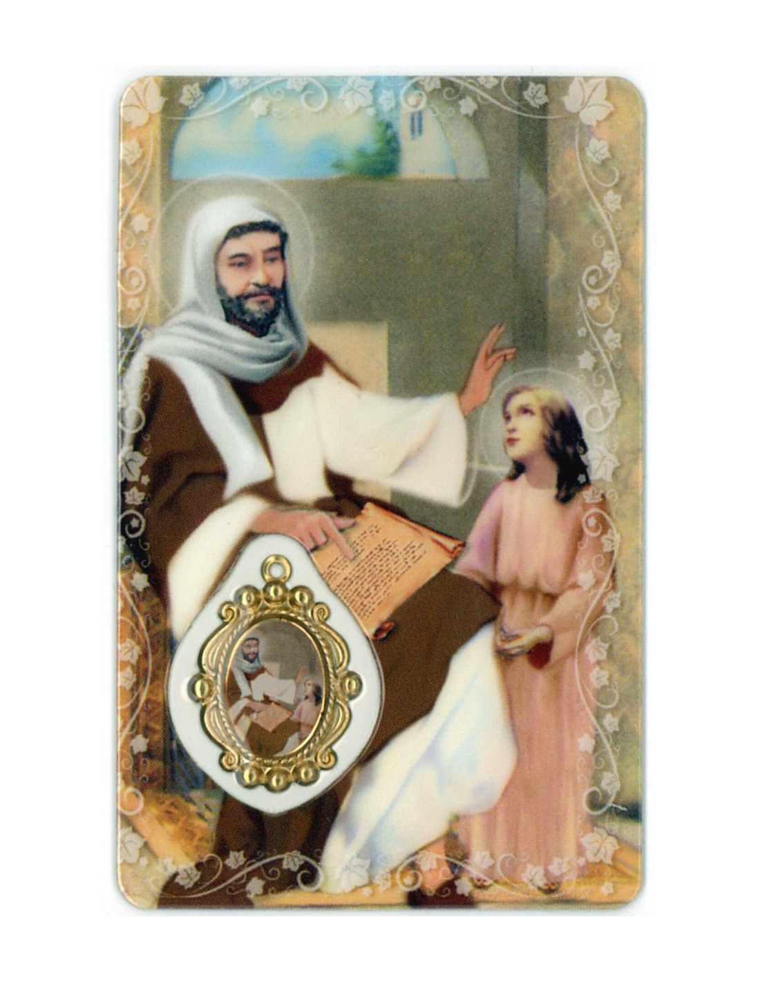 Estampa con Medalla de San Joaquin Con La Virgen Niña. La estampa mide 8x5cm y está realizada íntegramente en plástico en Canadá con un proceso optimizado de tecnología eficiente y sostenible.La medalla se encuentra integrada en la estampa. Ambas cosas le confieren una gran durabilidad, y que el color se mantenga en el tiempo.