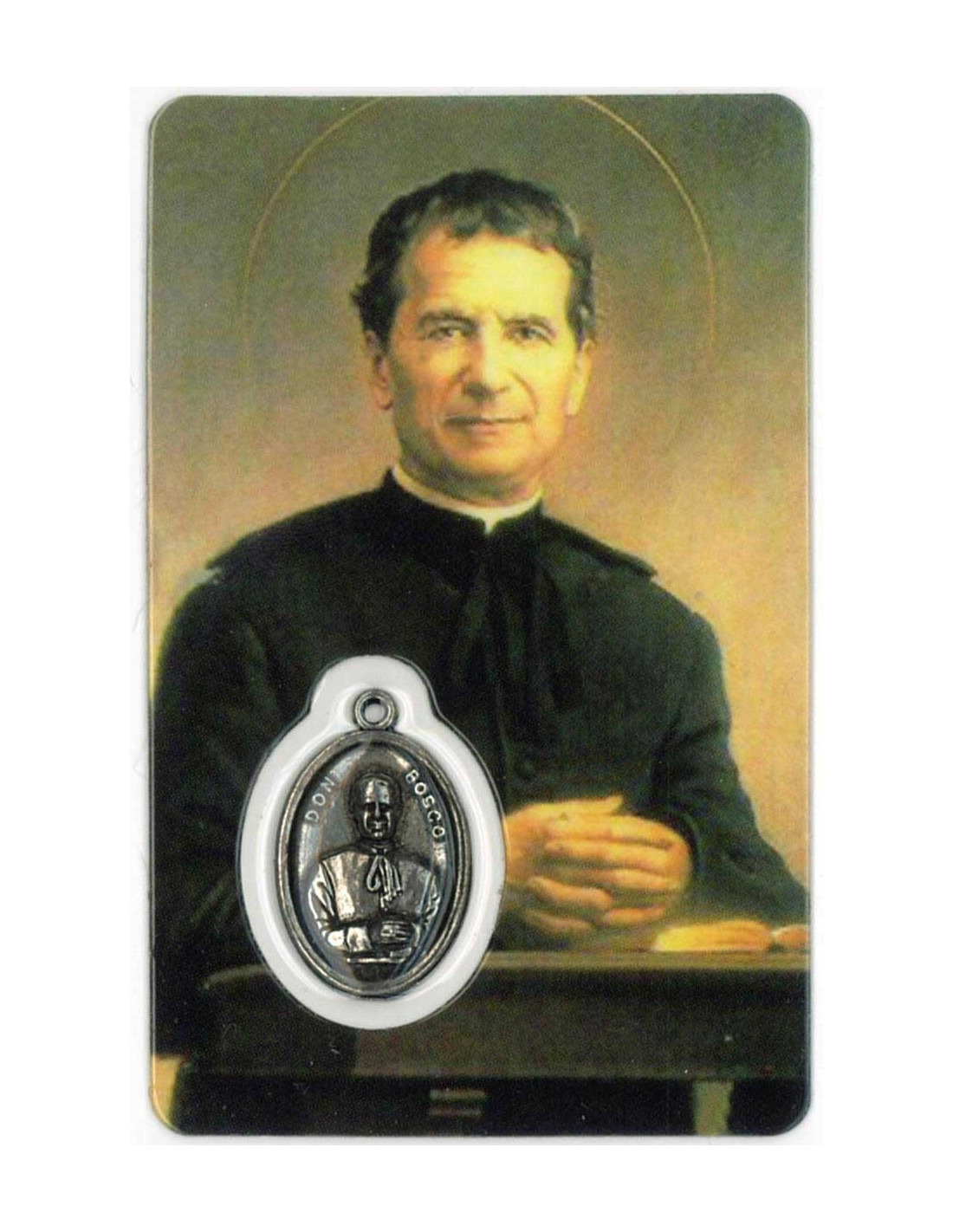 Estampa con Medalla de San Juan Bosco. La estampa mide 8x5cm y está realizada íntegramente en plástico en Canadá con un proceso optimizado de tecnología eficiente y sostenible.La medalla se encuentra integrada en la estampa. Ambas cosas le confieren una gran durabilidad, y que el color se mantenga en el tiempo.