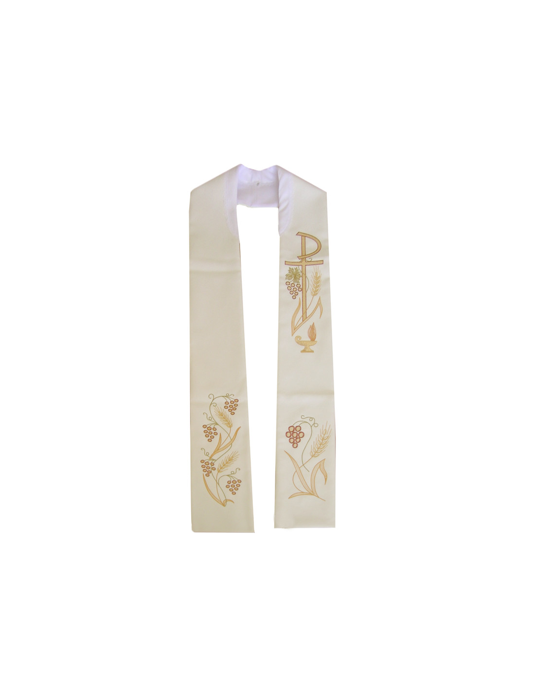 Estola Bordada Ancha Pax Uvas Y Espigas Con Flecos N144 Blanca