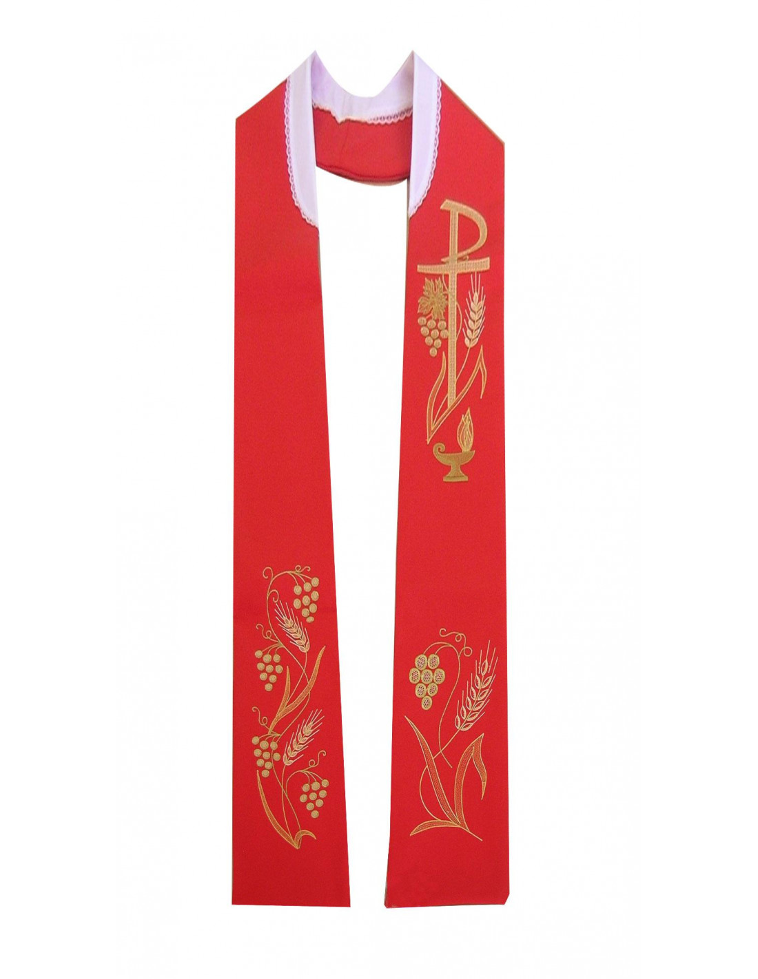 Estola Bordada Ancha Pax Uvas Y Espigas Con Flecos N144 Roja