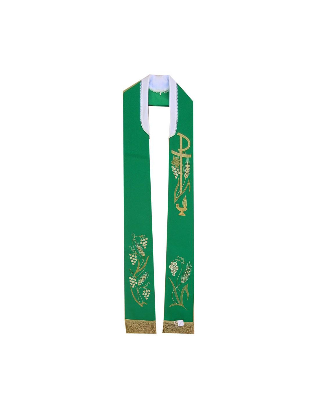 Estola Bordada Ancha Pax Uvas Y Espigas Con Flecos N144 Verde