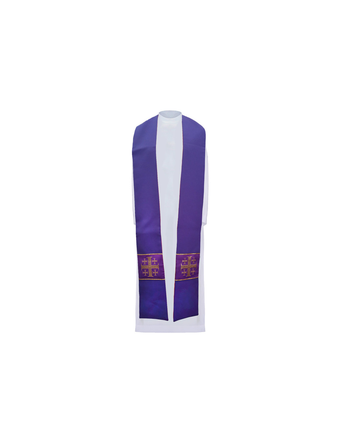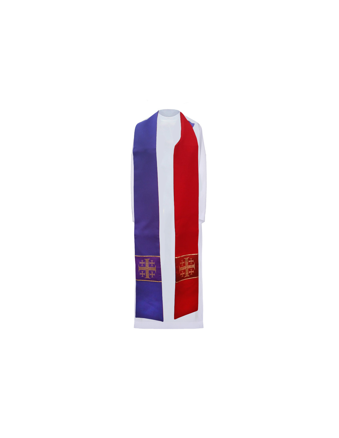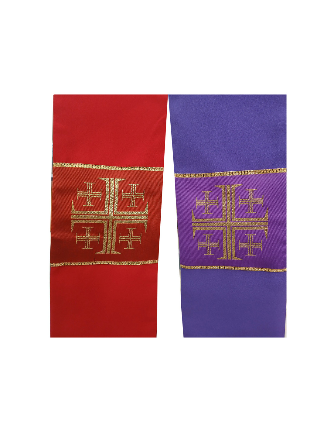 Estola Reversible Morada -Roja Estampada Cruz Griega