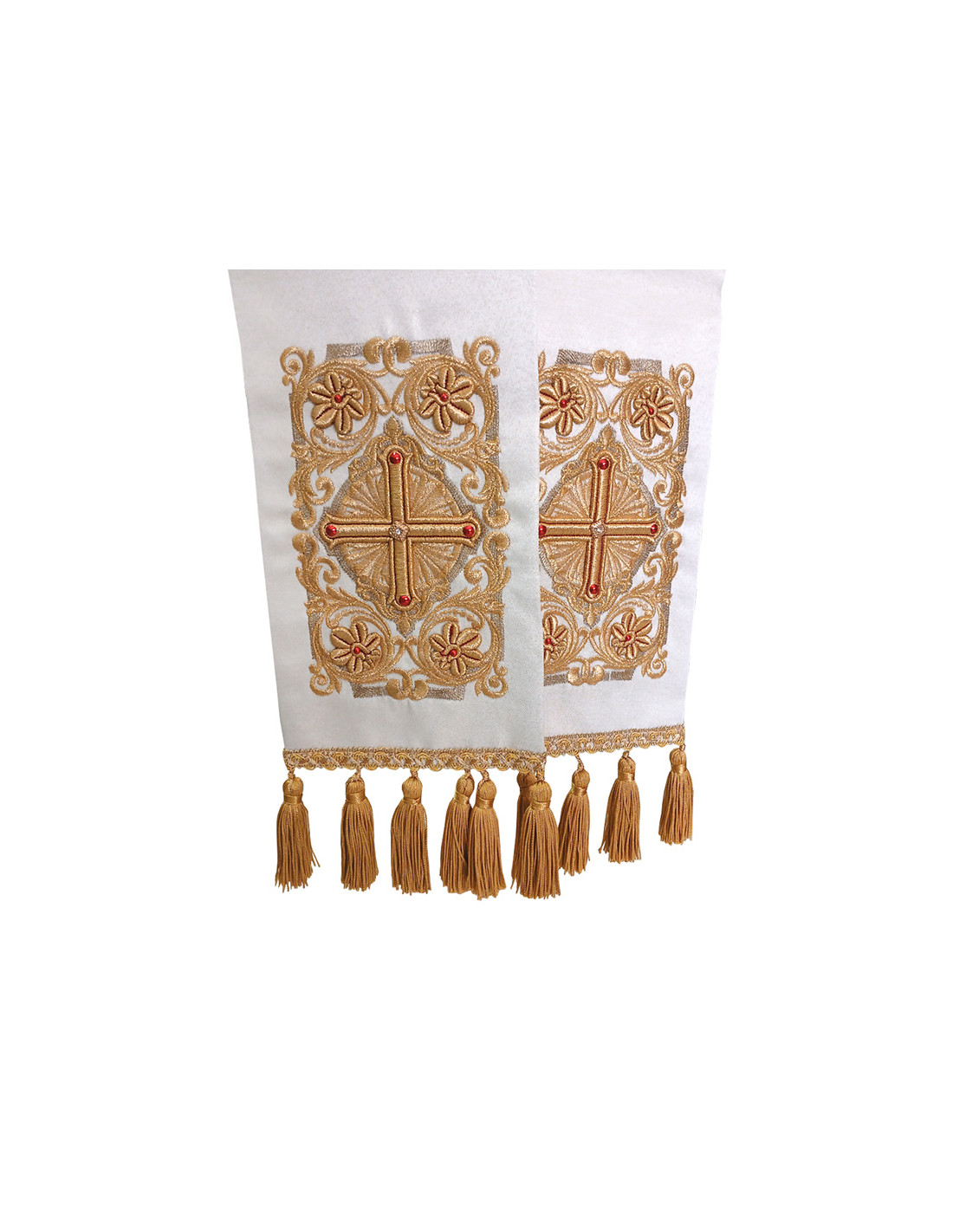 Estola Bordada Cruz Con Pedreria Roja Y Flecos Le/2010 Dorada