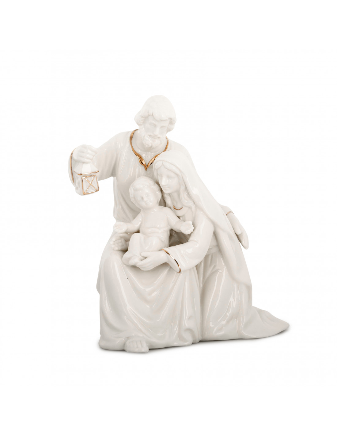 Nacimiento Sagrada Familia Porcelana Blanca 22X19cm Lineas Doradas San Jose Lampara