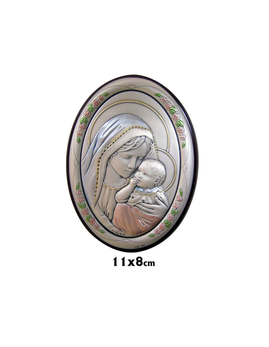 Icono Plata Oval 11x8cm Virgen Y Niño Chupando Dedo Pintado Con Apoyo Metal
