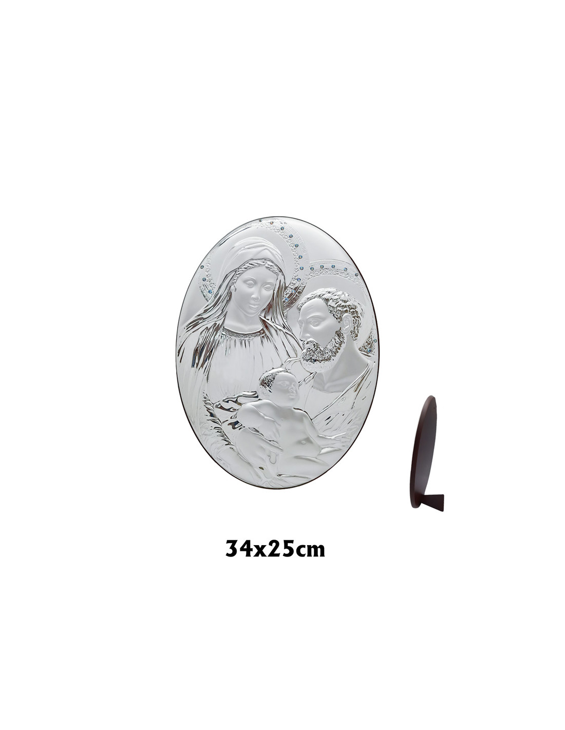 Icono Plata Sagrada Familia Oval 25 X 34Cm Aureola Con Pedreria
