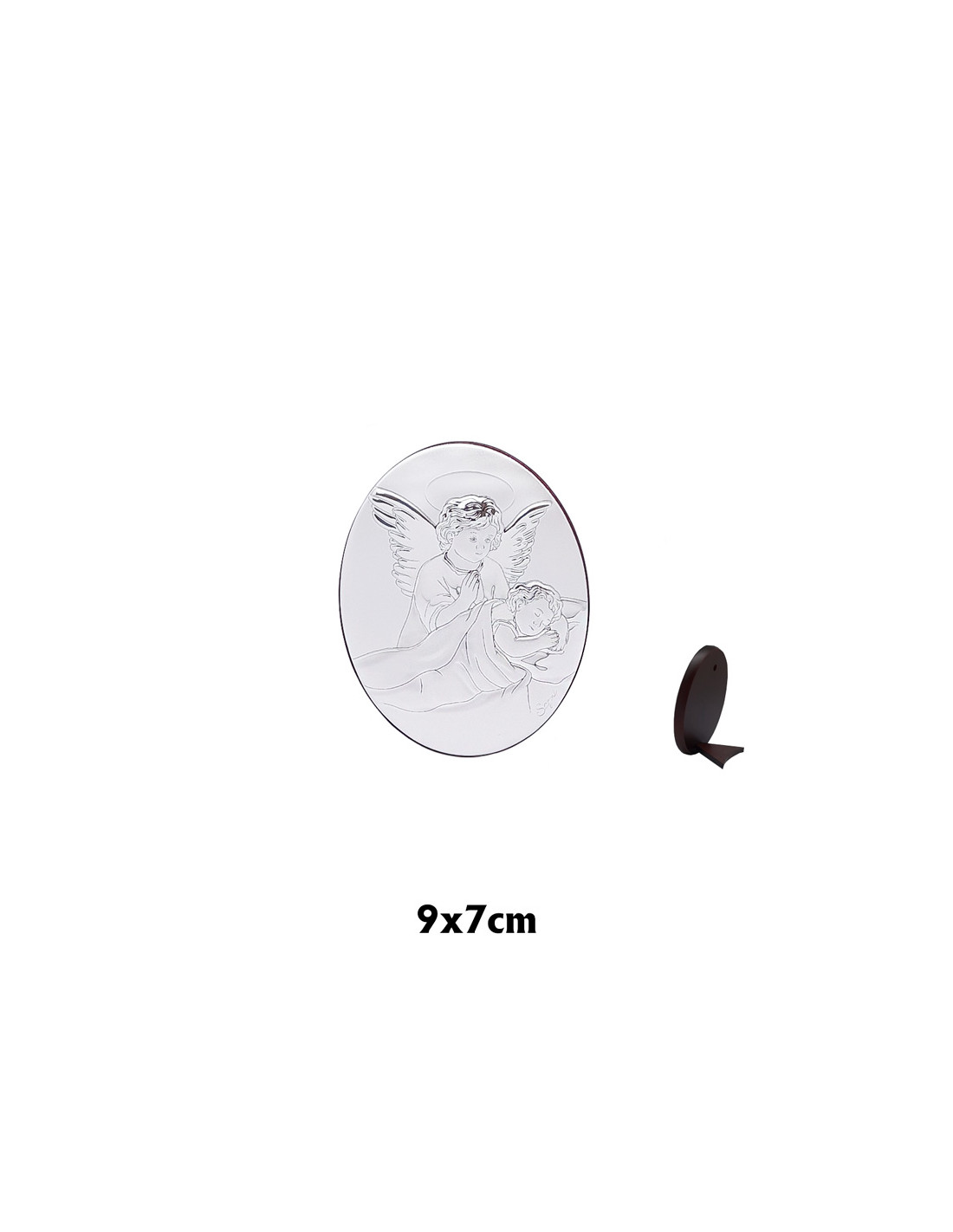 Icono Plata Angel Guarda Oval 9X7cm Con Niño Dormido