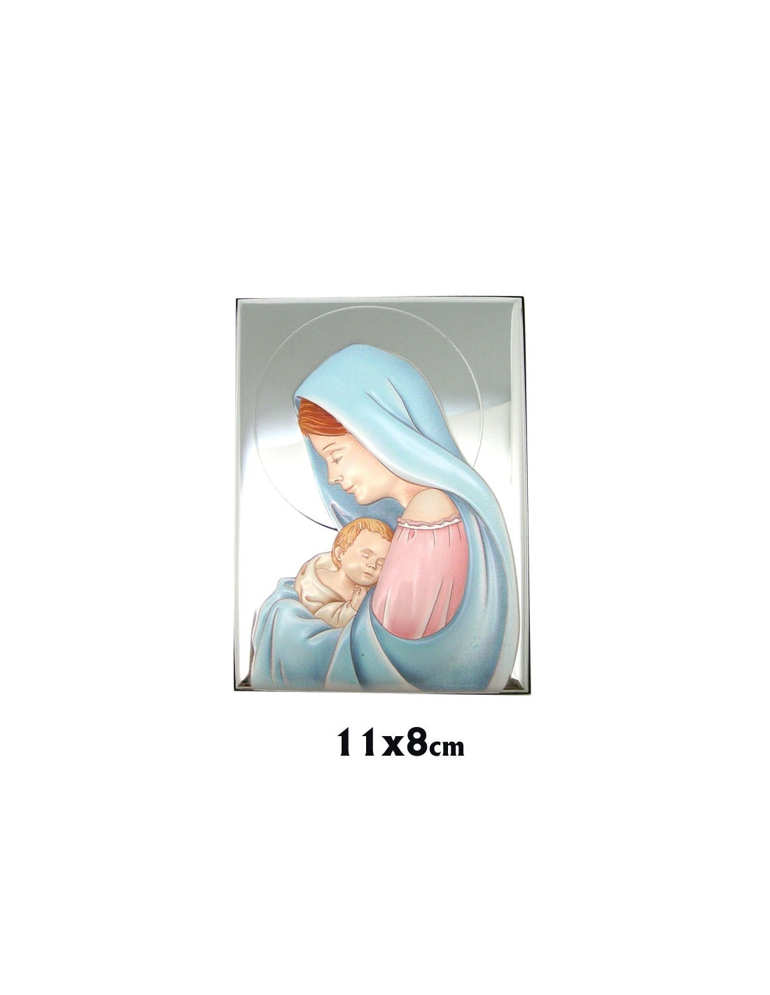 Icono Plata Virgen Con Niño 11X8cm Acabado Ceramico A Color Rectangular