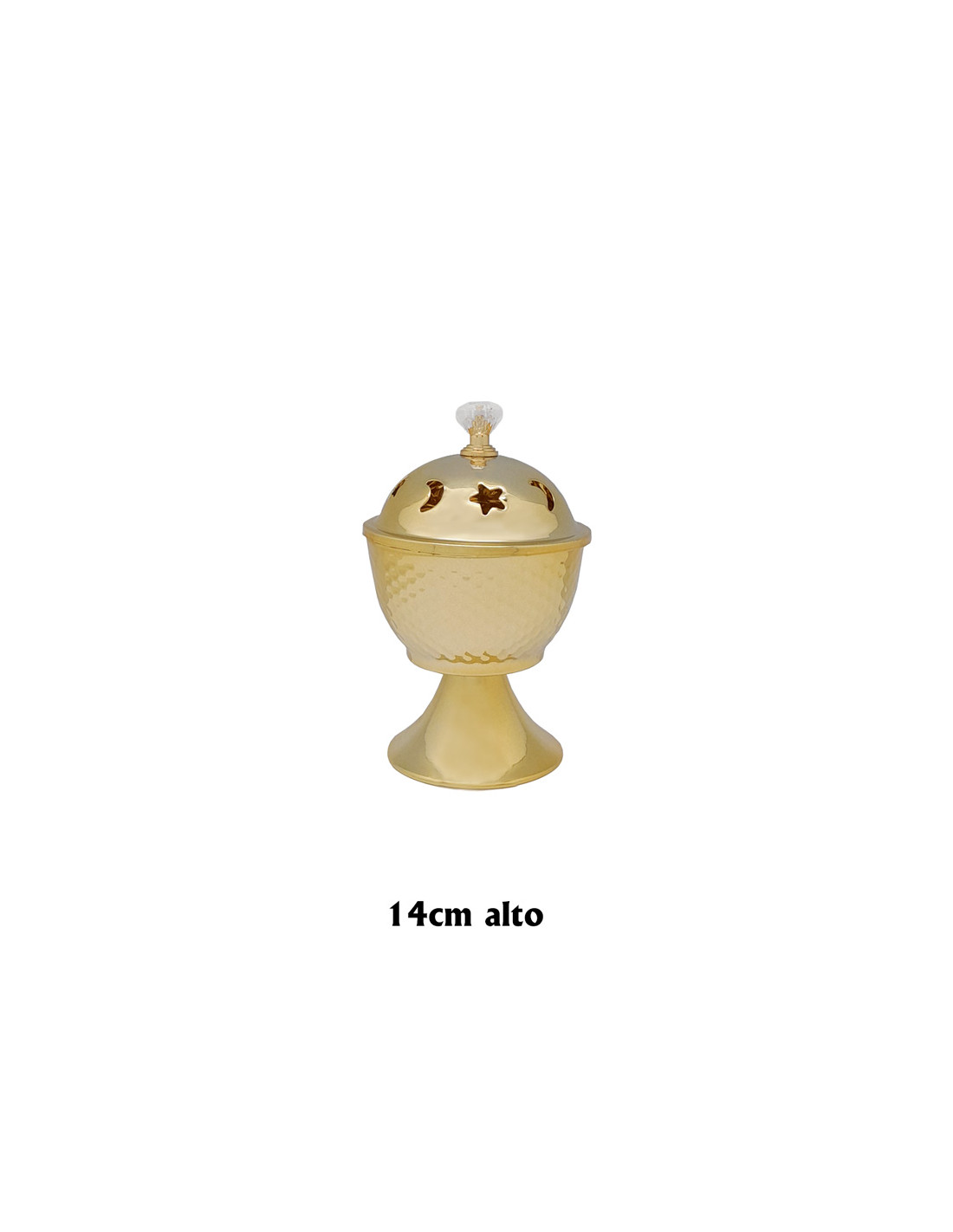 Incensario Dorado 14X8cm Base Lisa Rejilla Interna Y Tapa Adorno Trasparente Con Lunas Y Estrellas