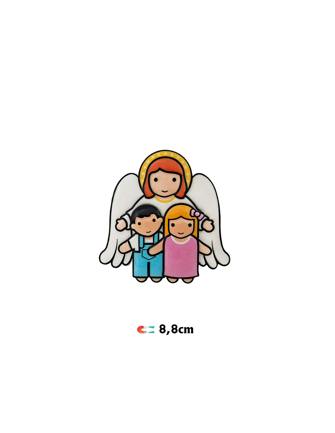 Iman Angel De La Guarda con Niño y Niña 8x8cm resina