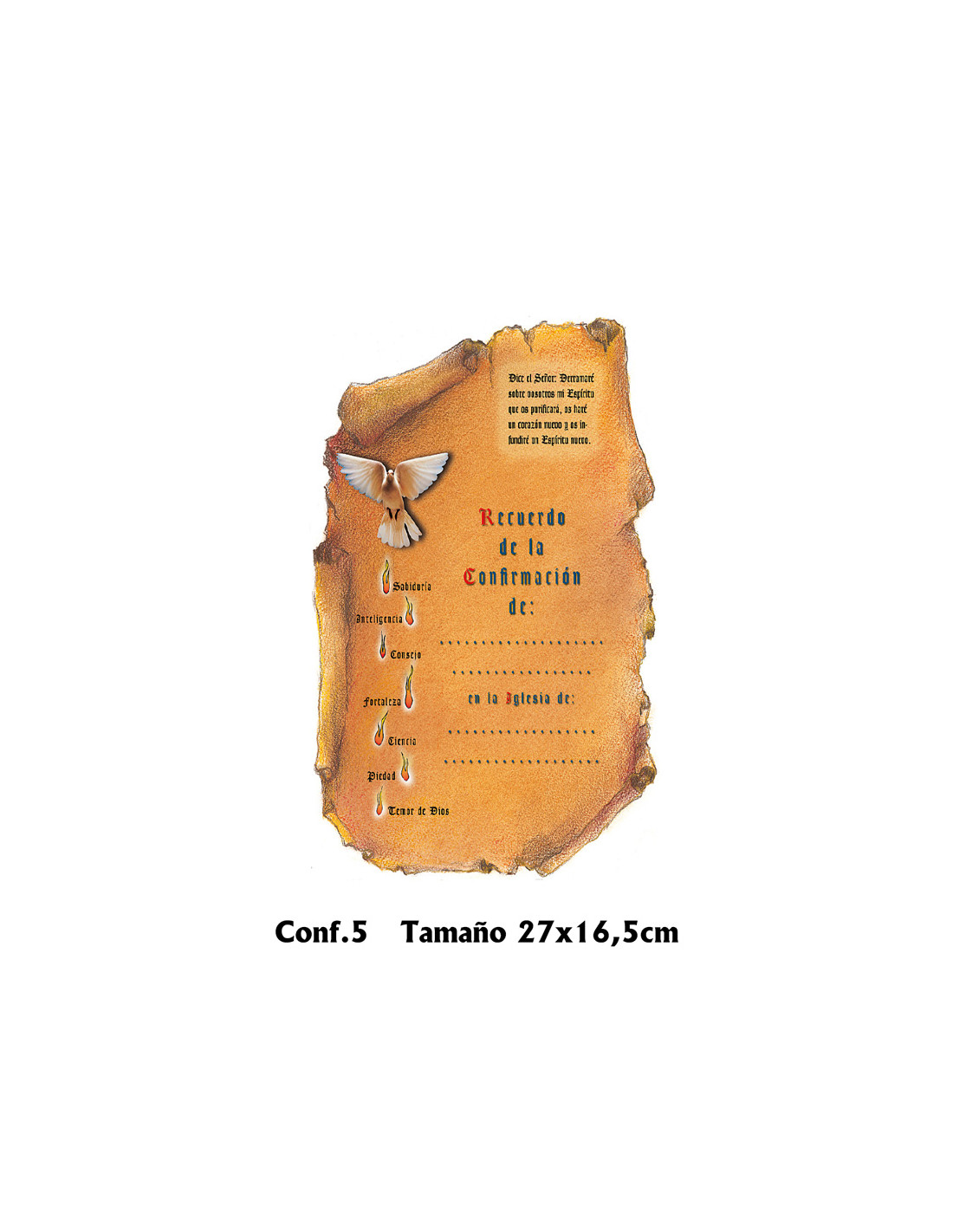Diploma Confirmacion Mod Conf.5 27X16.5Cm Pergamino Con Paloma Que Sopla