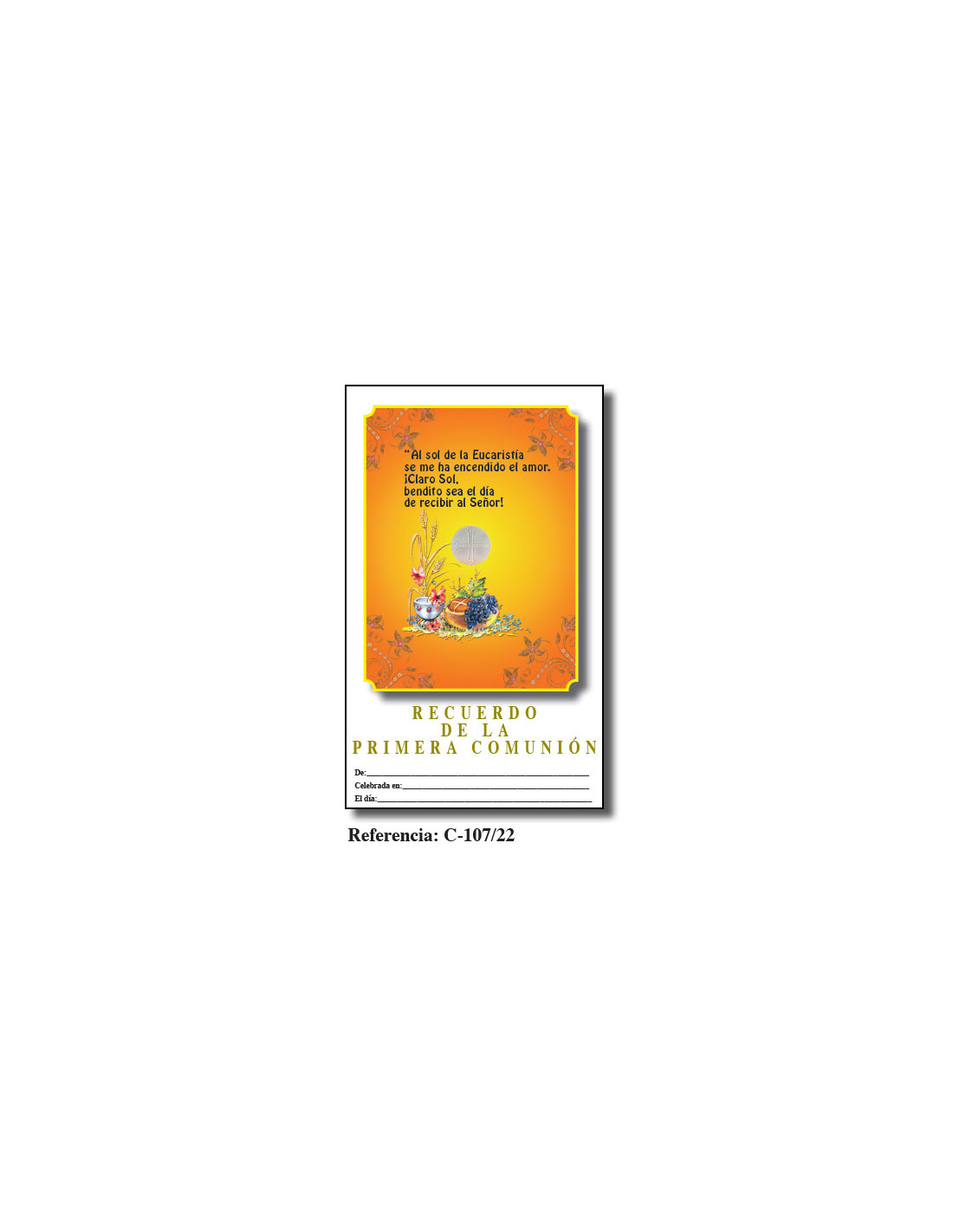 Lamina Primera Comunion 21. 5 X 34Cm Al Sol De La Eucaristia C-107/22