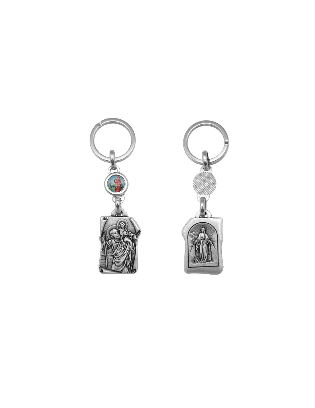 Llavero Metal San Cristobal Y Virgen Milagrosa Pergamino Con Foto Personalizada 38X25mm