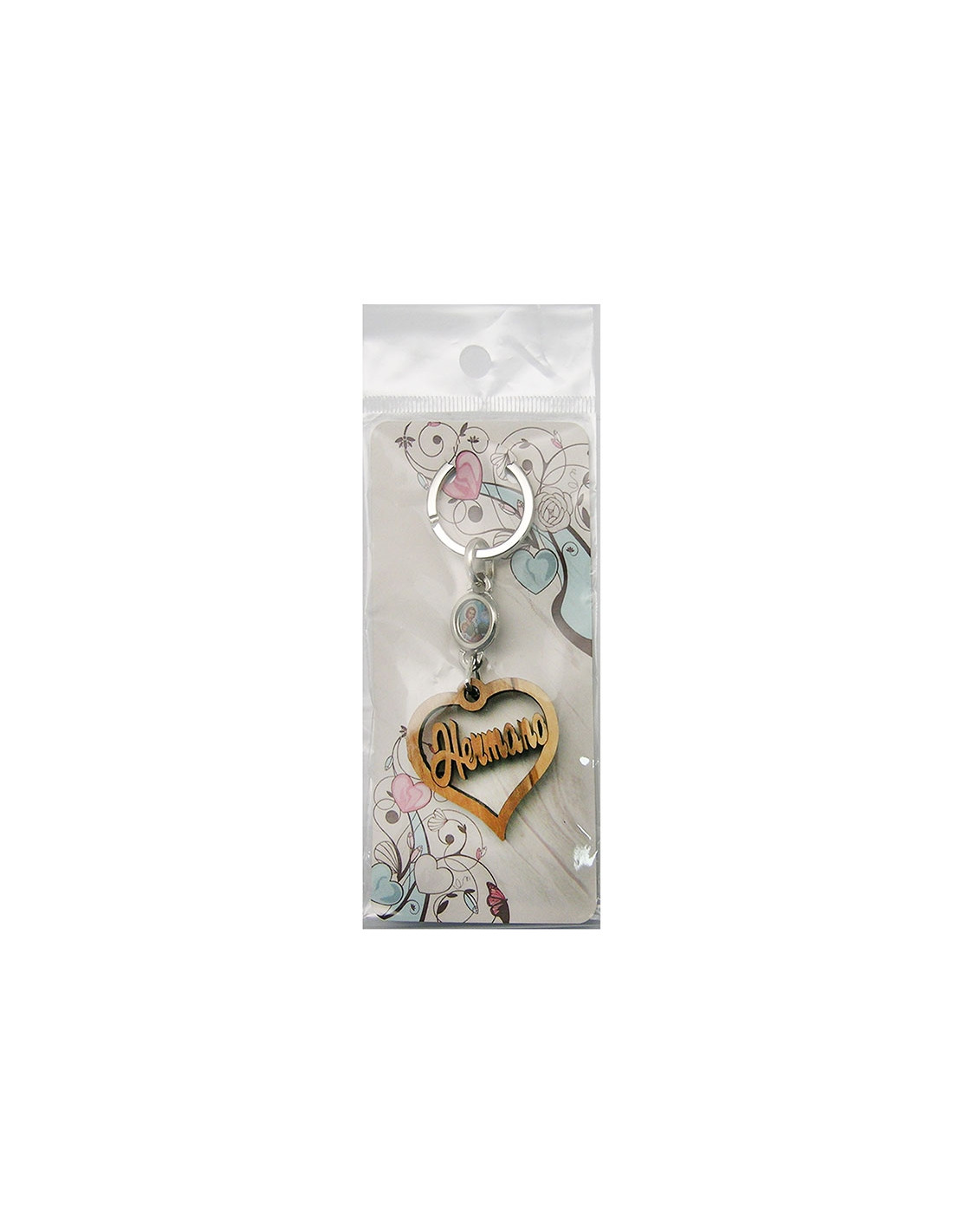 Llavero Madera Olivo Forma Corazon Hermano Con Foto Para Personalizar En Blister