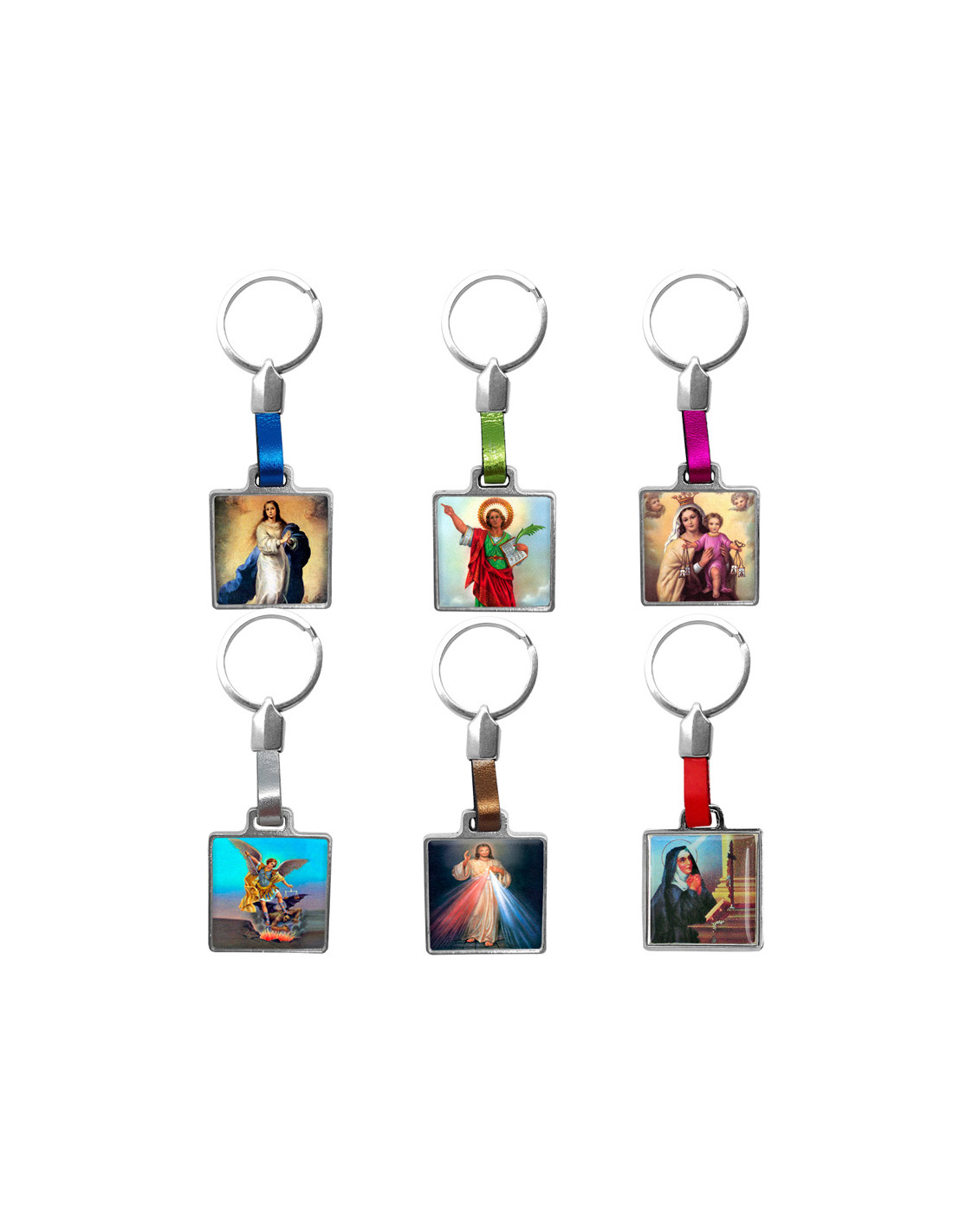 Llavero Metal Cuadrado Con Cuero Para Colgar En Colores Surtidos