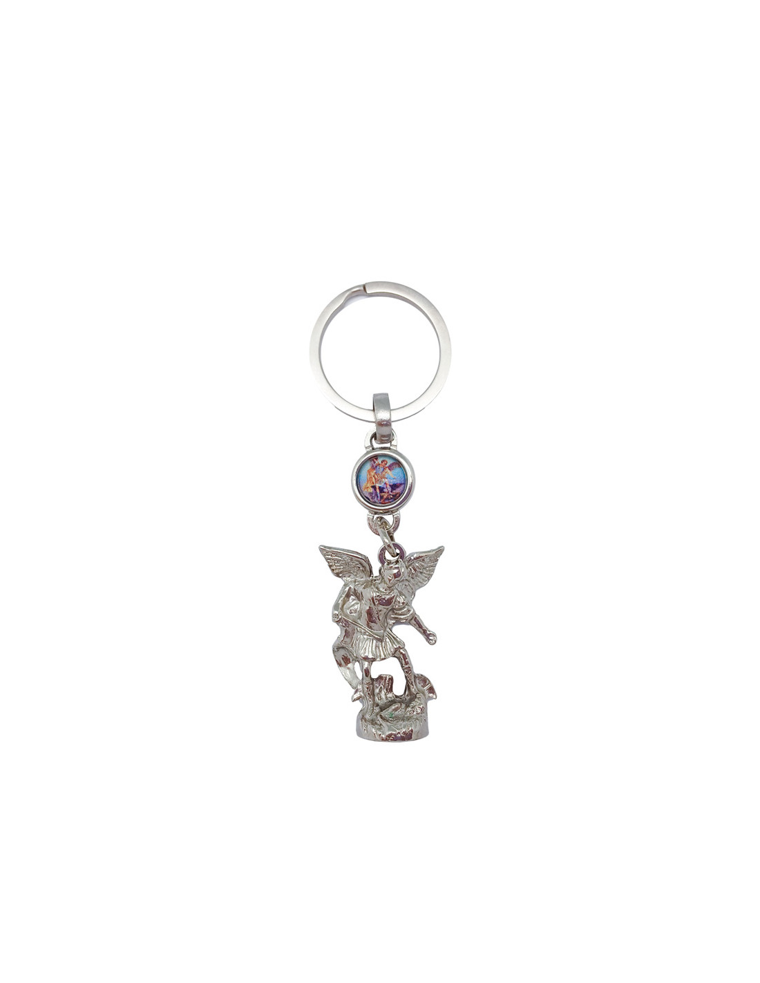 Llavero San Miguel Metal Figura Relieve Plateado