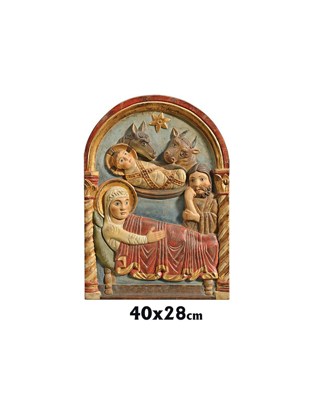 Retablo Navidad Relieve 40X28cm Madera Estilo Romanico Envejecido