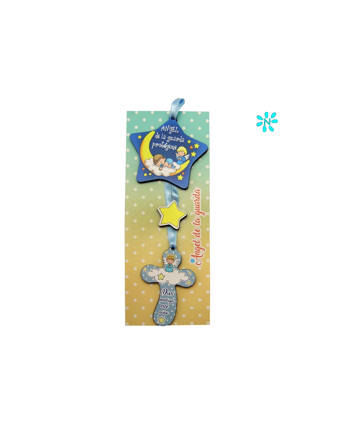 Medalla Cuna Estrella Angel De La Guarda Azul Con Cruz Personalizable