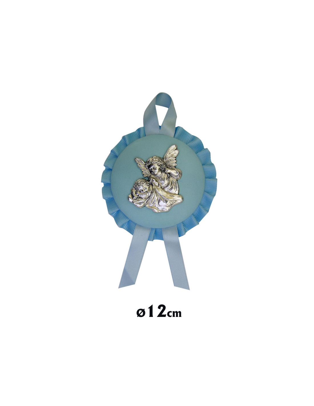 Medalla Cuna Con Placa Metal Angel Arropando Al Niño Piel Celeste 12Cm